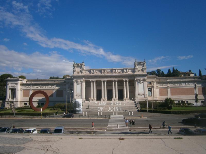 Parkın kuzeyindeki bahçeden çıktığımızda ise karşımızda Galeria Nazionale D'Arte Moderna binasını görüyoruz. Dışarısı böyle ise içerisi nasıldır diyerek biletimizi alıp (4 €) içeri giriyoruz. Hiç bir şey anlamadan, üstelik çamaşır makinesi atık giderinin ne anlattığını çözemeden çıkıyoruz.