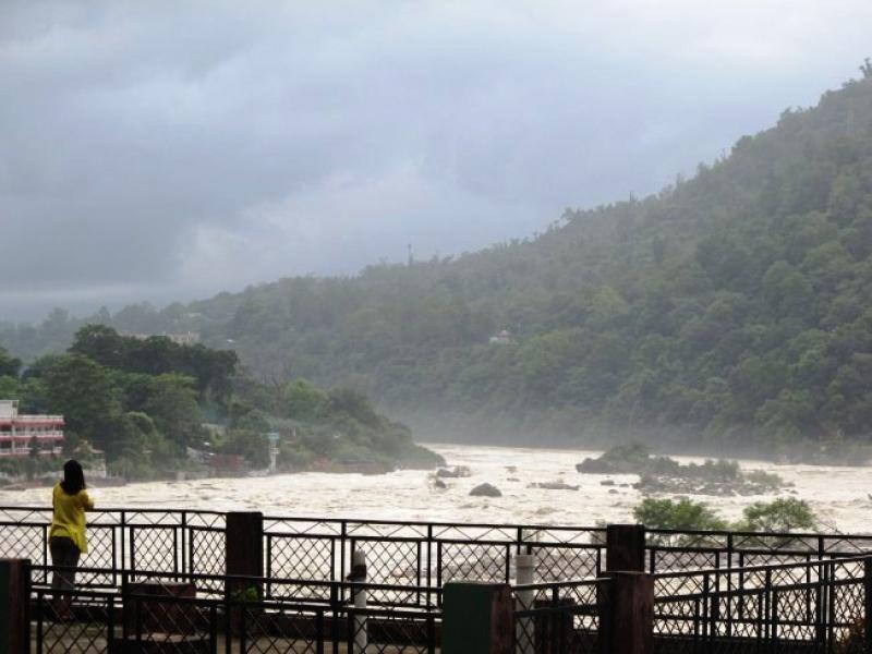 Muson yağmuru altında hüzünlü ve güzel Rishikesh