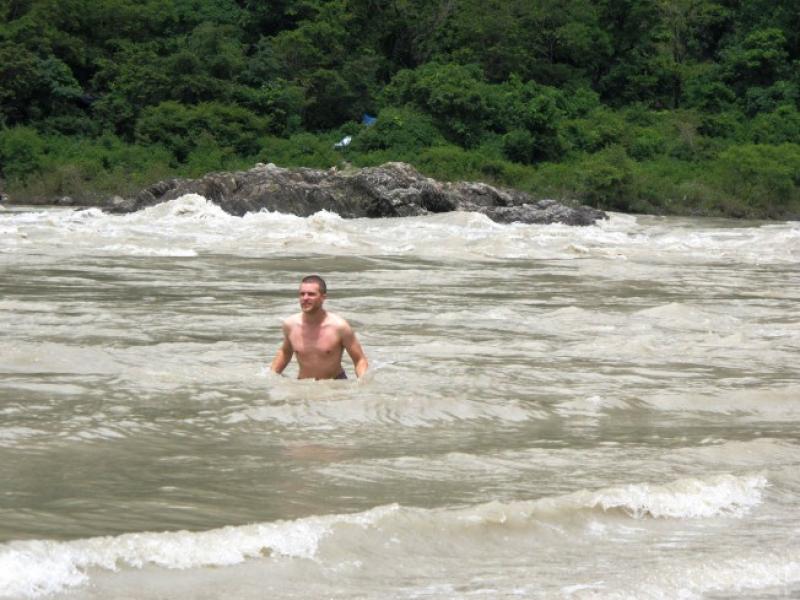 Gündüzleri sıcaktan bunalırsanız ve yeterince cesaretiniz varsa Ganj’ın bulanık sularında serinleyebilirsiniz. Yüzmek, özellikle muson döneminde akıntılar ve su seviyesinin yüksekliği sebebiyle tavsiye edilmiyor. Yerli halkın yaptığı gibi Ganj’da bir banyo yapmak ise sizin kendi seçiminize kalmış. Kutsal olan ve halkın içinde yıkandığı, suyunu içtiği ama aynı zamanda çamaşır-bulaşıklarını yıkadığı, ölülerini içine saldığı bu nehre ben kendimi salamadım. Sadece kıyısında, şaşılacak derecede beyaz ve yumuşak kumlu kumsalında yürüdüm. Til ise Ganj’a girip bir güzel yıkandı kutsal sularında...