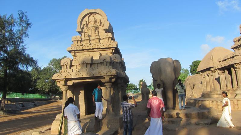 Bir Fransız kolonisi olan Pondicherry'e gideceğim aslında; Auroville, Pondicherry civarında. Ama onun öncesinde namını çok duyduğum Mahabalipuram ya da Mamallapuram adıyla anılan bölgeye gitmek istedim. Mahabalipuram, UNESCO'nun Dünya Mirası sit alanı olarak korumaya aldığı tarihi bölgelerden biri. Birçok tapınak, heykel, mağara eşliğinde 7. ve 8. yüzyıl Hint yapılarına burada hayran kalıyor ve mitolojik öğelerle dolu hikâyelerini şaşkınlıkla dinliyor insan.