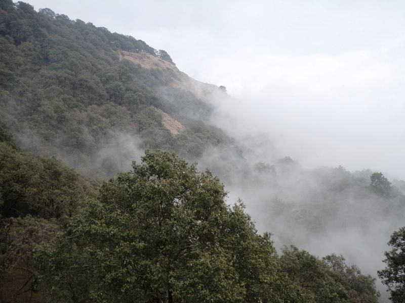 Saat 10.00’da buraya varmıştık ve normalde ortalama 6 saat süren yolu 3 saatte gelmişiz. O kadar yorulduk, olsun o kadar. Plan, saat en geç 15.00’te güneş batmaya başlamadan ve hava kararmadan geri dönmek. Ancak görsel olarak şahane olsa da pratik olarak bizi bitirecek yoğunlukta bir sis bulutu aşağıdan yukarıya bize doğru çıkmaya başlıyor. Saat tam olarak 15.00 itibariyle 2 metre ötesini görmek imkânsız. O dağların etrafını saran yoğun bulutlardan birinin içindeyiz ve yola çıkmak imkânsız. Biraz bekleyelim diyoruz fakat olmuyor, akşam burada kalıyoruz.