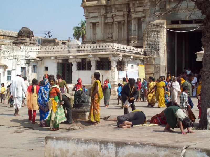 Tapınak önündeki çılgın Hintli kalabalığımız
