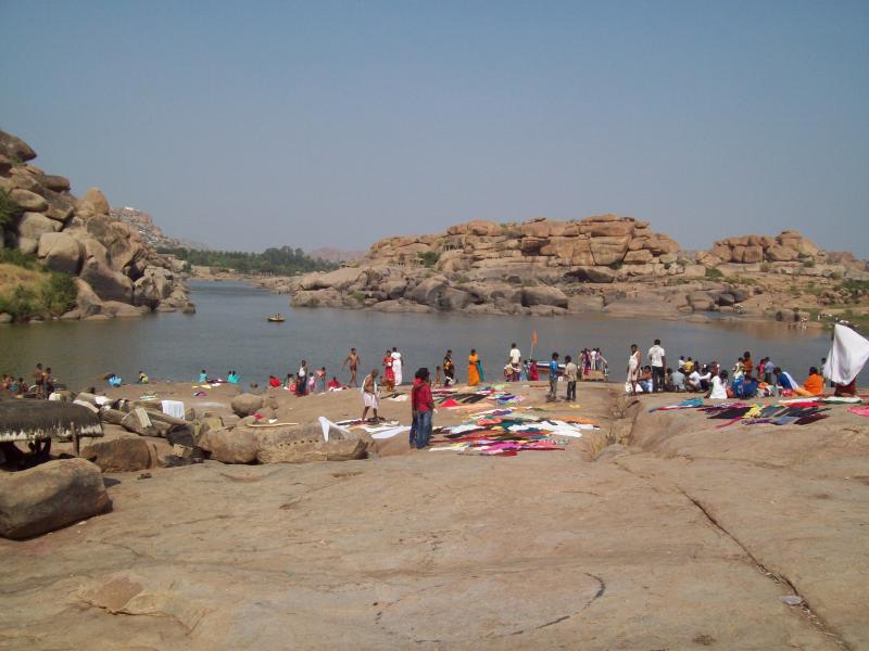 Hampi halkı duşlarını nehirde alıp kıyafetlerini nehirde yıkıyor. Gençlik delicesine eğleniyor nehirde duş alırken : )