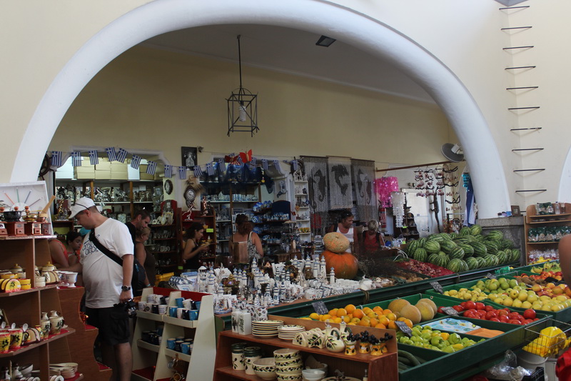 Pazarın içi ise Kos’a gelen her turistin uğrak yeri. Bu pazarda sadece meyve sebze yok, Kos’a özgü yiyecekler ve içecekler, hediyelik eşyalar ve süngerler raflarını kaplıyor. Buradan domates reçeli, bal, mastica, mastica şekeri, Kos’a özel şaraplar, sünger ve zeytinyağı alınabilecekler arasında.