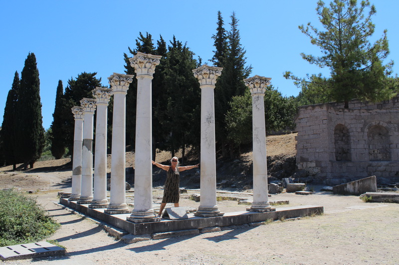 Bir tepede yer alan Asklepeion’dan Kos’tan Bodrum’a kadar uzanan bir manzaraya hakim olabiliyorsunuz.