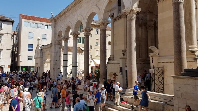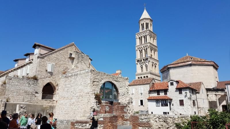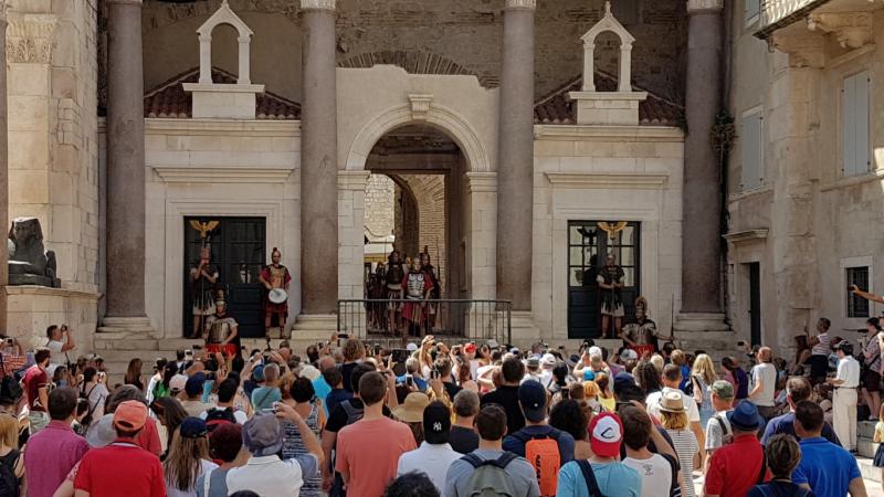 Kahvaltı sonrası Split’in simgesi haline gelmiş olan Diocletian Sarayı’na gittik. Bu saray günümüzde dünya üzerindeki en iyi korunmuş Roma saraylarından biri. Bu saray MÖ 300’lerde Roma hükümdarı Diocletian için yazlık saray olarak yaptırılmış.