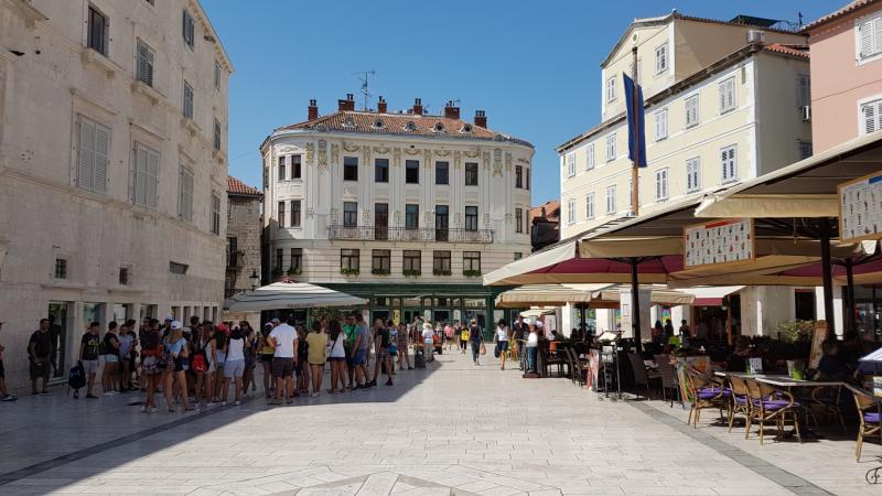 İlk gün varışımız geç olduğundan direk uyuduk ancak ertesi sabah erkenden Split’i keşfetmek üzere sahile doğru yürüyüşe başladık. Sanki dün gece yattığımız şehir ile sabah kalktığımız şehir birbirinden farklıydık. Etraf o kadar renkli ve hareketliydi ki, şaşırdık. Bir gece önce yaşadığımız hayal kırıklığından sonra bunu pek beklemiyorduk.