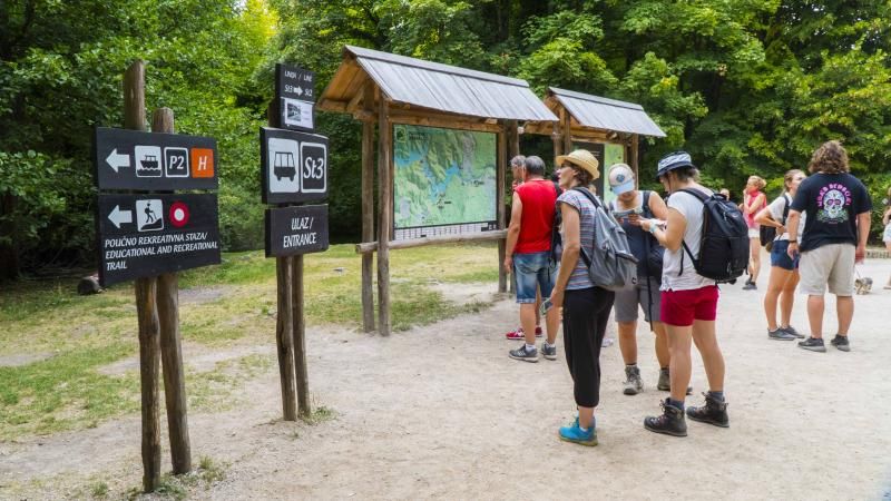 Araba park yeri ile doğal park girişi arası yürüyerek 3-4 dakika. Bilet alacağımız noktada öncelikle bilgilendirmeleri okuduk. Burada yürüyeceğiniz mesafeye ve yapacağınız aktiviteye göre rota seçebiliyorsunuz.