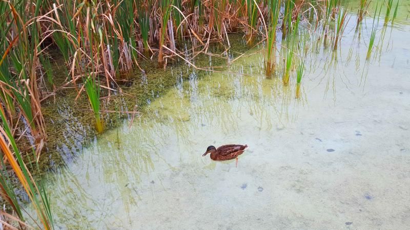 Gölün üzerine inşa edilmiş doğaya uyumlu ahşap yoldan yürüyoruz. Bu yürüyüşümüze harika manzaralar ve göldeki sevimli ördekler eşlik ediyor.