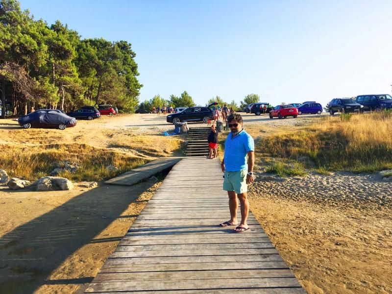 Buranın en büyük özelliği muhteşem güzellikteki kum lagüne sahip olması. Arabamızı çam ağaçlarının yükseldiği bir park alanına bırakıp, havlularımızı alıp doğruca kumsala doğru yürüdük. Park alanından kumsala uzunca bir ahşap iskeleden yürüyerek ulaşıyorsunuz.
