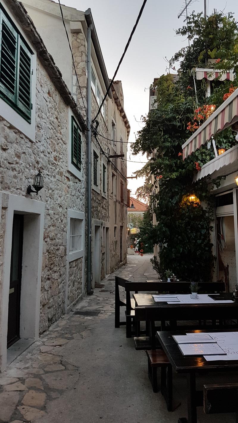 Buraya gelmişken yemek yemeden olmaz tabii. Restoranların, barların ve gece kulüplerinin yoğunlaştığı kısım adanın güney tarafı. Burada deniz kenarındaki restoranlarda yer bulmak biraz zor. Bu nedenle öncesinde rezervasyon yaptırmak önemli. Biz gün batımı izlediğimiz sırada neyse ki bir tanesinde rezervasyon yaptırmıştık ve gittiğimizde yerimiz hazırdı. Adanın spesyalleri arasında mürekkep balığı soslu risotto var. Mutlaka denemelisiniz. Ancak genel olarak balıklarını çok lezzetli bulmadık. Şaraplara diyecek pek bir şey yok. Özellikle bu bölgede Plavac Mali üzümünden yapılan şaraplar bir hayli popüler.