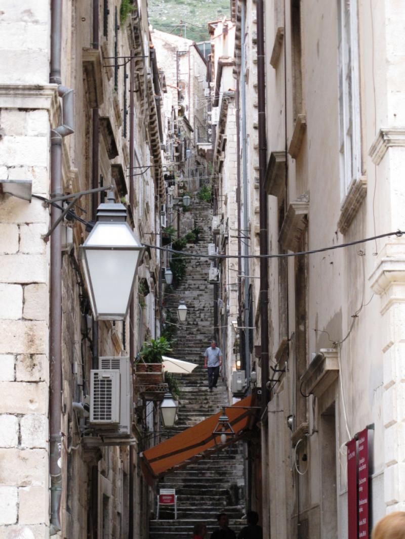 Dubrovnik’in etrafı ihtişamlı tarihi surlarla çevrili eski şehir sokaklarını turlamaya doyamadık. Bembeyaz, tertemiz taş kaldırımlar, bol merdivenli dik yokuşlara sıralanmış eski binalar, daracık, minicik, güzelim ara sokaklar ve bu sokaklara serpiştirilmiş çeşit çeşit kafeler, restoranlar, dükkanlar ile hem Ortaçağ'dan kalma bir eski şehir burası, hem de cıvıl cıvıl bir turistik merkez.