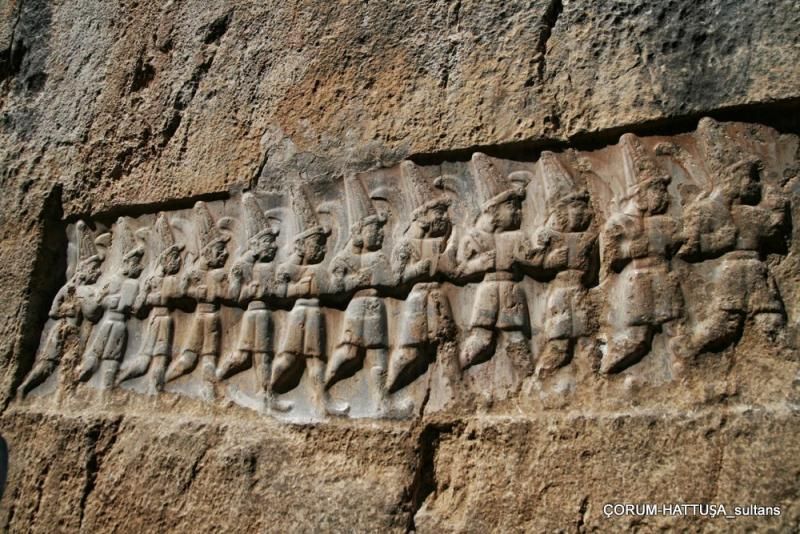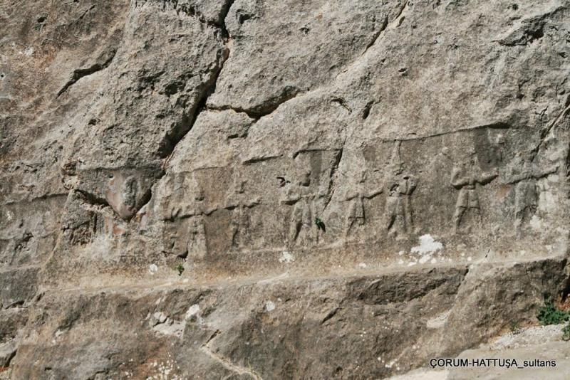 İki galeriden oluşan bu kayalarda kabartmalar yağmura, kara, Çorum'un meşhur rüzgarına rağmen binlerce yıldır oradalar. M.Ö 13. yüzyıla tarihleniyor bu açık hava tapınağı. 12 tanrı kabartmasının İsa'nın 12 havarisi ve 12 imamla da ilişkilendirilmesi ilginçti.