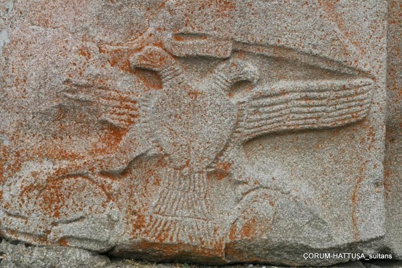 Rehberimiz döneminin önemli bir kült ve sanat merkezi olan Alacahöyük'te, 4 uygarlık çağı açığa çıkarıldığını söyledi. Şehre girişteki sfenksli kapı ve duvarlara işlenmiş rölyefler Hitit dönemi eserleri. Buradaki çift başlı kartal çok etkileyici ki sembolü günümüzde pek çok ülkenin bayrağında yeralıyor.