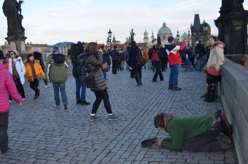 İsterseniz meydandan üçüncü yön olarak tekrar meydana dönüp, astronomik saat önünden yürüyerek, kalabalıkla beraber ağır ağır Charles köprüsüne yürüyebilirsiniz. Bu yolda da ilginizi çeken çok sayıda aktivite ve mağaza göreceksiniz. Bu yolu Prag maceranız bitene kadar bir kaç kez yürüyeceğinizden emin olun. İnsan seline kapılın onlar sizi köprüye götürecekler ama köprüye ulaşınca heyecanlanıp hemen köprüye gitmeyin. Önce köprünün önündeki meydanı, sonra köprünün başındaki Eski kent köprü kulesini ve sonrada köprünün kenarına geçip köprüyü yandan seyredin.