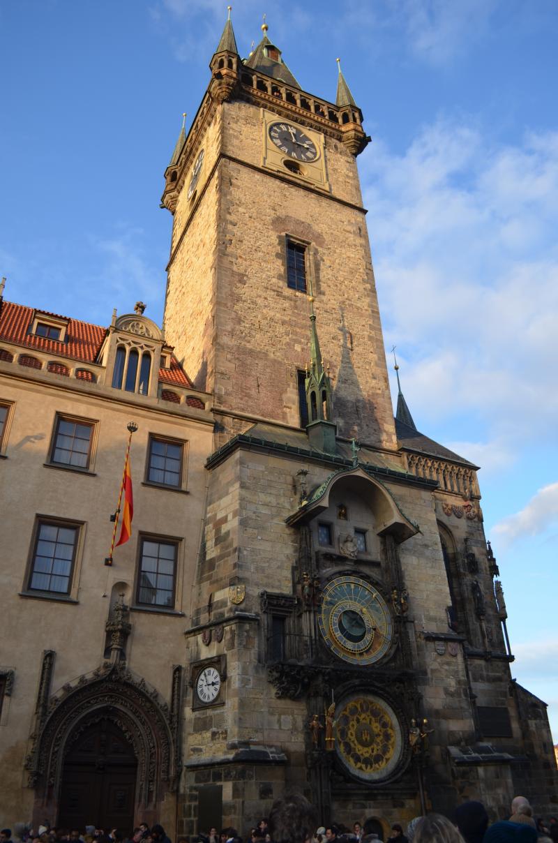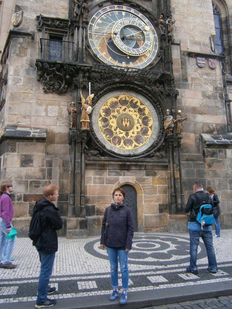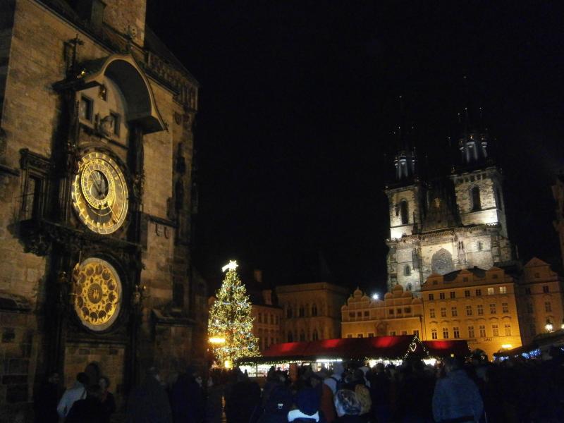 Aşağıda caddenin sonunda bir binanın alt katında market var, ihtiyaçlarınızı oradan karşılayabilirsiniz. Müze halen arkanızda olacak şekilde iken, sol tarafta çok güzel hediyeliklerin satıldığı, yanyana büfelerden oluşan açık pazarı mutlaka turlayın. Sese duyarlı olarak bağıran cadı maketleri eminiz çok hoşunuza gidecek. Pazarı turladıktan sonra kısmen dar bir sokaktan geçeceksiniz ve işte karşınızda Astronomik Saat (Astronomical Clock) ve yanında Prag'ın kalbi eski kent meydanı (Staromestske Namesti-Old Town). Astronomik saat her saat başı çalar, 12 havari sırası ile gösteri yapar. Yaklaşık bir dakika süren figür gösterisi, horoz figürünün dışarı çıkıp kanat çırpması ile sona erer. Kısacası bir kaç dakika öncesinden başlayarak kalabalık bir turist kafilesinin tebessümü ve çektikleri fotoğraflar ile olay gün boyu tekrarlanır. Gösteriden sonra isterseniz Kulenin üstüne çıkıp (110 CZK) manzara izleyebilirsiniz. Unutmadan söyleyelim, siz gezinize buradan başlamak isterseniz, en yakın metro istasyonu "Mustek". Meydana 3-4 dakika yürümeniz yetecektir.