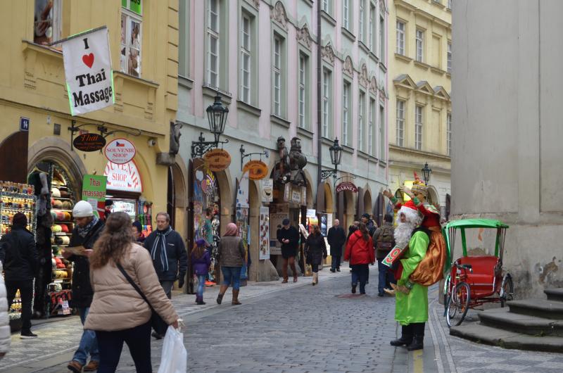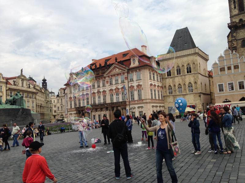 Yukarıda resimde arkada bir kısmı görülen yerin eski kent meydanı (Staromestske Namesti) olduğunu anladığınızdan eminiz. Meydan inanın saatlerinizi geçirebileceğiniz bir yer. Yazın gittiğimizde meydan sokak göstericileri ve onları izleyen turistler ile doluydu.