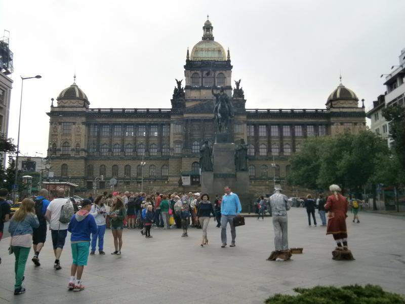 Geziye Ulusal Müze (Narodni Muzeum-National Museum) ile başlıyoruz.Muhteşem müze binası meşhur Wenceslas meydanının(Vaclavske Namesti) başındadır."Muzeum"metro istasyonundan çıktığınızda devasa bina ile karşılaşacaksınız. İçeri girecekmisiniz bilemeyiz ama dışını karşısına geçip uzunca seyredin. Bitti ise şimdi binayı arkanıza alın ve aşağıyı seyredin. Mağazalar bayanların bayılacağı türden ve fiyatlarda uçuk değil. Aşağıya doğru yürürken caddeyi tramvayların diklemesine kestiğini göreceksiniz. Burayı unutmayın, Dancing House'a (danseden bina) gitmek için kolay yolu söyleyeceğiz ama şimdi önceliğimiz bu değil. Biz aşağıya kadar yürümeye devam edip geri dönüp manzarayı bir de aşağıdan yukarı seyrediyoruz. Buraya kadar olanları bir görelim.