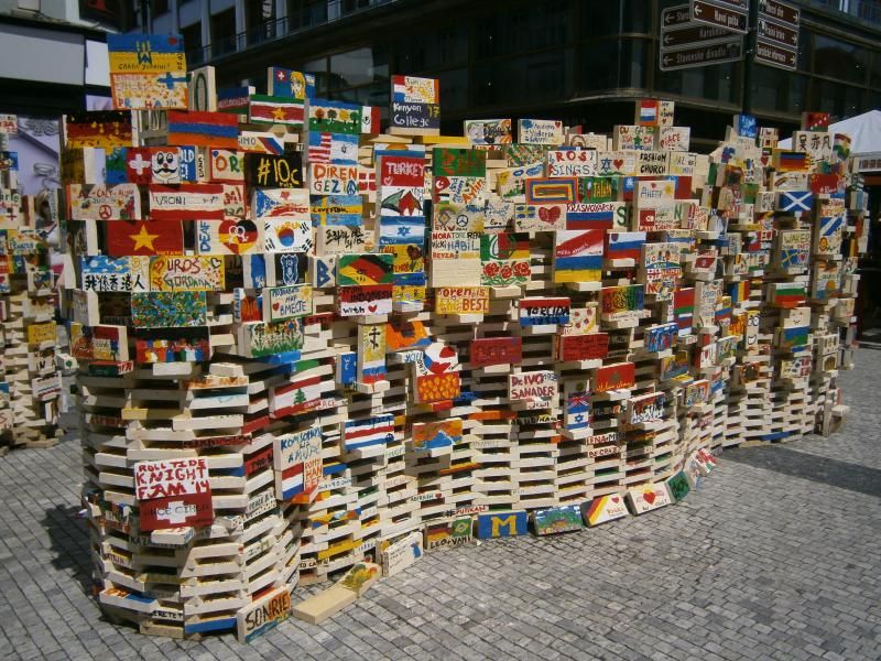 Şimdilik meydanda işimiz bitti, gideceğimiz üç yön var. Birincisi Tyn kilisesinin arkasınki çok güzel mimarisi olan Belediye Binası (Municipal House). Aşağıda Binanın resmini, ilgimizi çeken uyuyan amcaları ve turistler için güzel bir aktiviteyi paylaşıyoruz. Tahtaları kendin boyayıp yerleştiriyorsun.