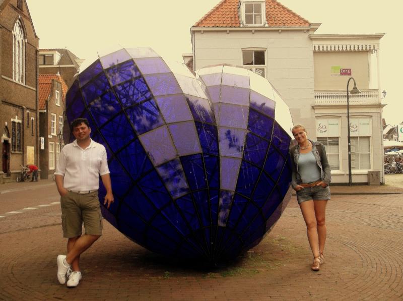 Delft aynı zamanda porselenleri ile de çok ünlü bir şehir. Nasıl bizde turkuaz rengi var onlarda da Delft Blue rengi çok ünlü. Dünyaca ünlü porselenlerinde bu rengi kullanıyorlar. Gördüğünüz bu kalp de şehrin simgelerinden biri ve çok fazla fotoğraf çekilmek istenen bir obje.