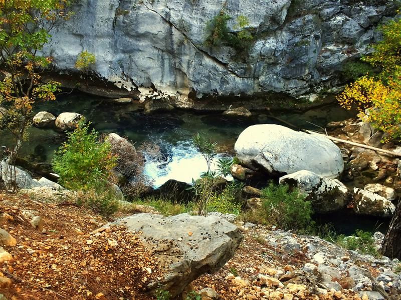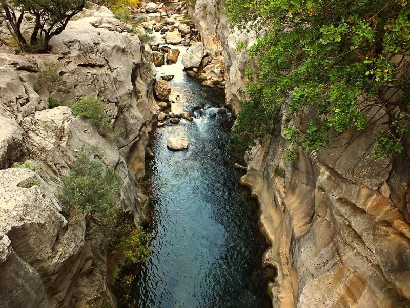Eğer macerayı ve tehlikeyi seviyorsanız Göksu’nun solundan devam edin. Yüksekliğe karşı hassasiyetiniz varsa ya da yerler kaygan olduğundan ayakkabınızın tabanı uygun değilse bunu sakın yapmayın çünkü gerçekten çok tehlikeli. Kanyonun derinliği yer yer 400 metreyi buluyor. Zengin bitki örtüsü, gördüğümüz izlere göre yaban hayatı ve seyrine doyum olmayan doğal güzellikleri var.