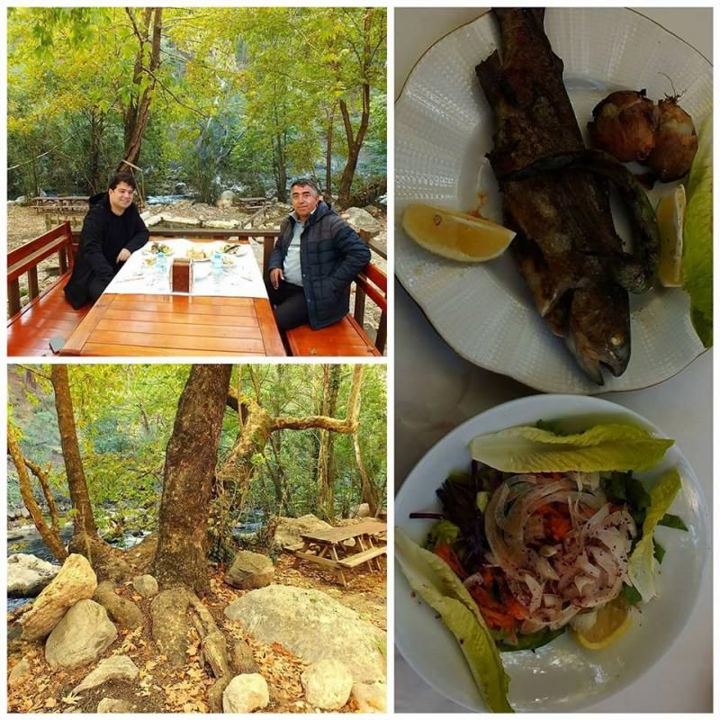 Daha önce de belirttiğim gibi kanyonun girişinde bulunan büfenin etrafında canlı alabalık havuzları var. Suyun kenarına oturup birer alabalık siparişi veriyoruz. Salata eşliğinde getirilen alabalıklarımızı afiyetle yedik. Balıklarımız tatlı su balığı olmasına rağmen gerçekten oldukça lezzetli idi. Çaylarımızı da içtikten sonra adam başı 15 TL ödeyerek yazılı kanyondan ayrılıyoruz.