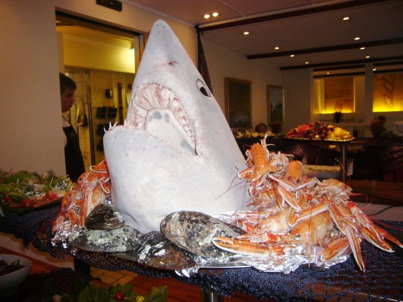 Dolaşırken Hafnia Otel’deki özel deniz mahsulleri büfesi afisini görünce hemen rezervasyonumu yaptırdım. 48 Euro’ydu içki hariç. Hafnia, merkezde 4 yıldızlı bir otel. Yemeklerin bir kısmı güzel bir kısmı ise pek damak zevkime uymadı ama tatmış oldum.