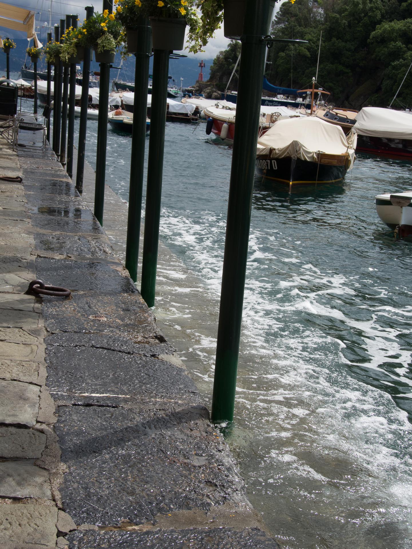 Liman yarım ay şeklinde ve etrafında turuncu, sarı, bej renkli evler var. Evlerin altında ise oldukça şık ve lüks butikler, restoranlar, zeytinyağı-sabun-şarap marketleri var. En çok dükkanların şık ve modern dizaynları ile dışlarındaki kapılar dikkatimi çekiyor, limanda gelgit olayı oldukça çok olmalı.