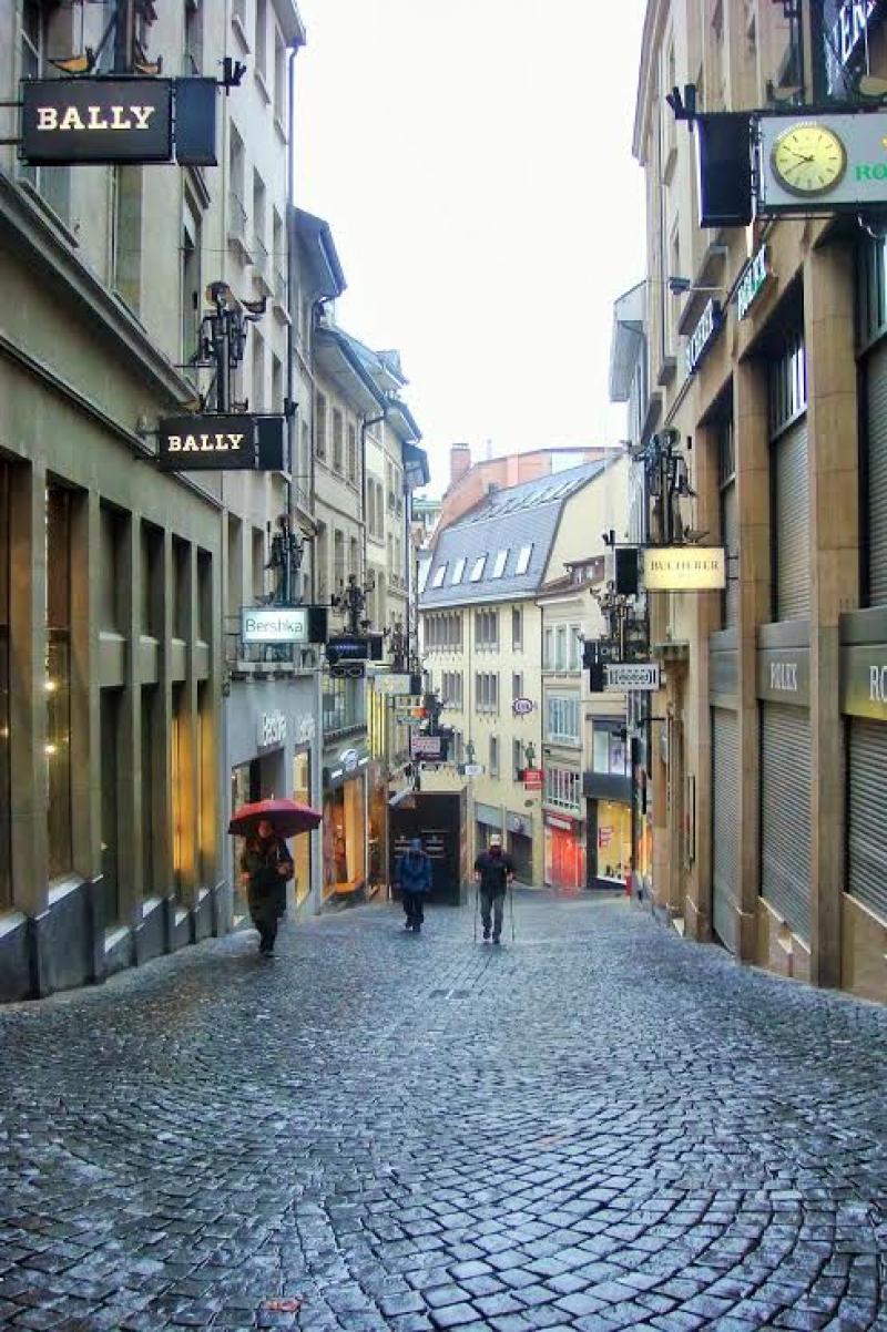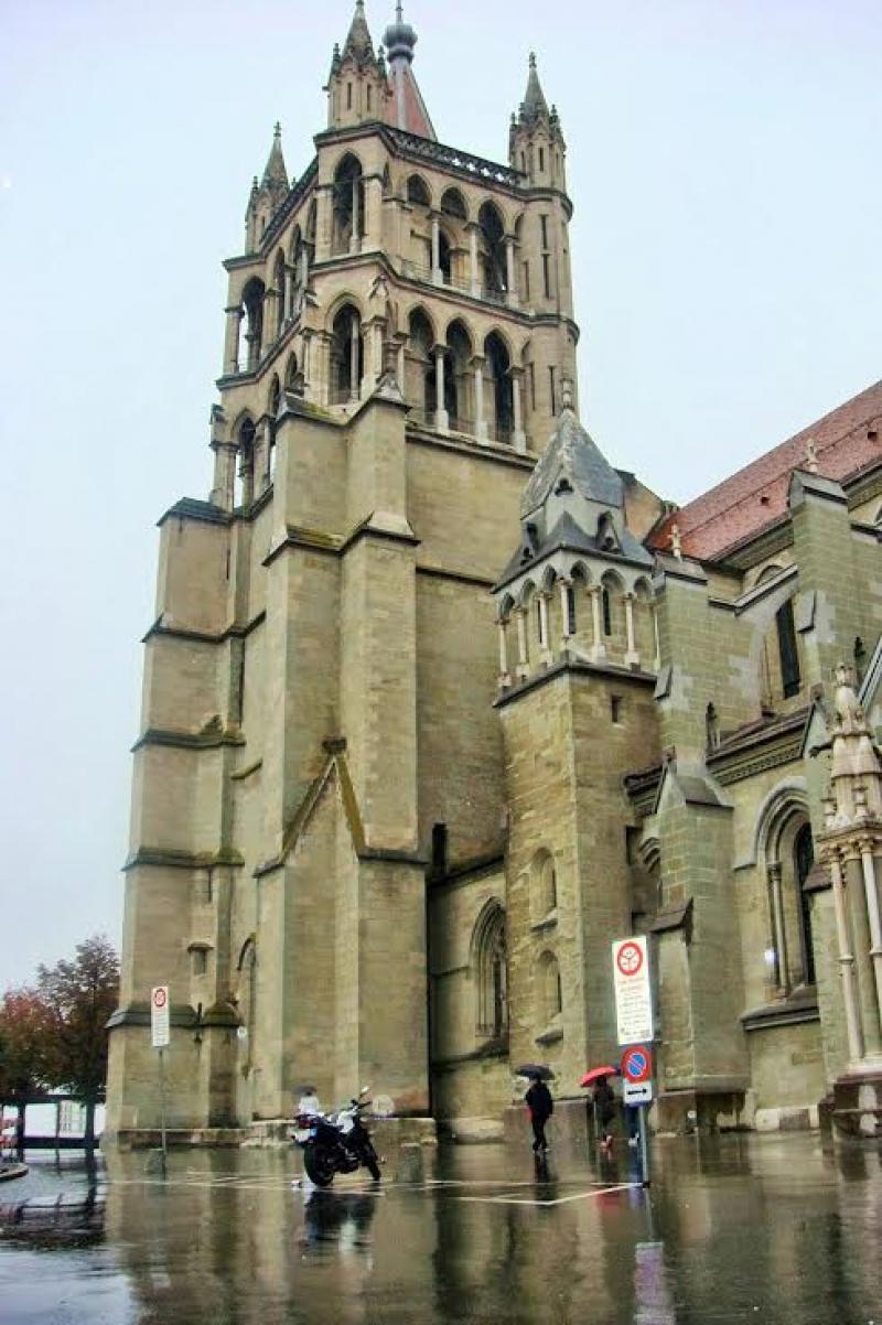 İlk durağımız, hemen tren istasyonunun karşısındaki hafif rampa bir yol olan Rue du Petit-Chene’i takip ederek ulaştığımız St. Francis Kilisesi ve Meydanı oldu. Buradan Rue de Bourg ve Rue Caroline’den geçerek Rue Mercier üzerinden katedrale ulaştık. Rue Mercier’deki 2 numaralı ev de Lozan’ın en eski yerleşiminin olduğu yermiş. Günlerden Pazar olduğu için bizi katedralde bir sürpriz bekliyordu. Pazar ayini için çalan çanlar eşliğinde, yağan yağmurun şiddetini arttırmasından dolayı bir hayli ıslanmış bir şekilde katedrale girdiğimizde Pazar ayininin başlamak üzere olduğunu gördük. Hem yağmurun biraz dinmesini beklemek, hem de biraz ısınmak için ayinin başlangıç bölümünü izleyelim istedik. Güzel bir org dinletisinin sonrasında rahip konuşmaya başladığında tekrar şehir turumuza devam etmeye karar verdik. Hemen katedralin karşısında başlayan Escaliers du Marche’den inerek Pl. de la Louve’de bulduk kendimizi. Buradaki çalar saat, Hotel Ville (City Hall) ve Fountain of Justice adıyla bilinen güzel çeşme de bu şehirde mutlaka görülmesi gereken yerlerden... Bütün bu yol üzerinde birçok güzel dükkân ve alışveriş alternatifi mevcut… Ancak günlerden Pazar olduğu için ne yazık ki vitrinleri seyretmekle yetindik.