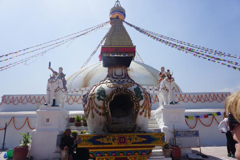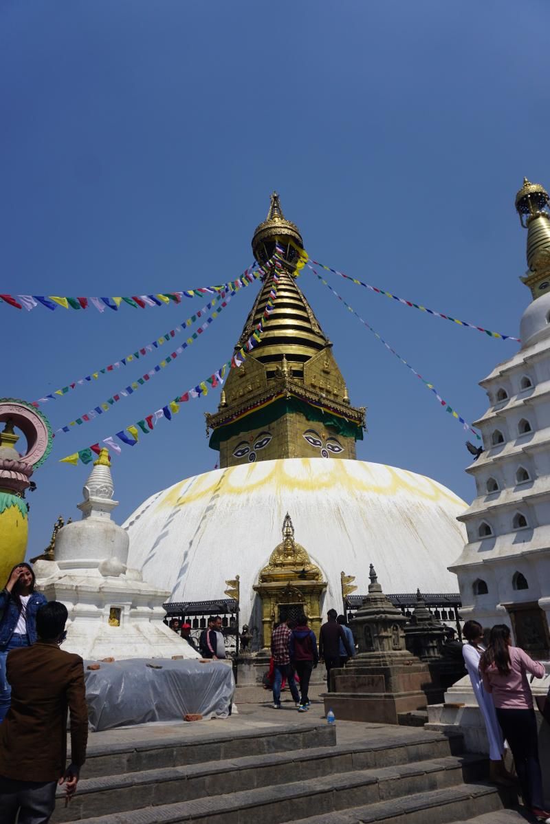 Stupa tüm ihtişamı ile tapınağın tam ortasında. Bu devasa kubbenin üzerinde, piramidin altındaki kare küpün dört bir karesinde yer alan dört çift büyüleyici “göz” halkını izleyen, her şeyi gören Budanın gözleri... Aynı zamanda da “merhamet ve bilgeliği”, “doğruyu görmeyi” “doğruya uyanmayı” simgeliyor… Herkes uyanıyor ama önemli olan “doğruya uyanmak” diyor Nirvana. Adeta gözlerinizin içine bakan gözler gerçekten çok etkileyici.