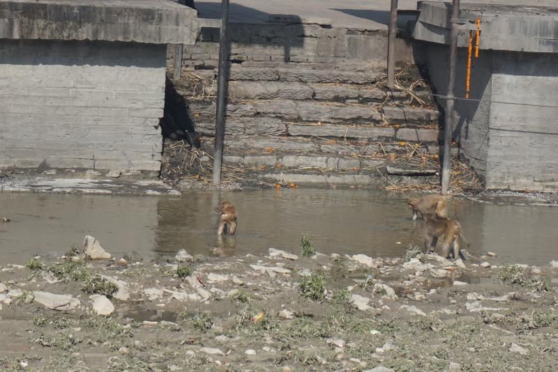 Nehrin (oldukça kirli) sularına girerek günahlarından arınmaya, hacı olmaya gelmiş insanlar çok sayıda maymunlarla birlikte kutsanıyordu.