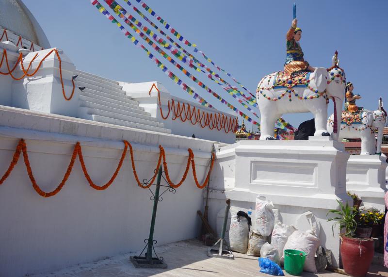 Bu arada Nirvana’nın gözleri dört bir tarafta size bakıyor ve sizi koruyor. Sadece bu kata çıkıp dolaşabiliyorsunuz zira tapınağa Budist din adamları ve rahipler (Monklar) dışında kimse giremiyor. Bu ilginç tapınağın içini de merak ediyorum ama ne yazık ki sadece etrafını dolaşmakla yetiniyor, içeri giremiyoruz, zira tüm stupalarda olduğu gibi bu stupanın da içine sadece Budist din adamları, rahipler (Monklar) dışında kimse giremiyormuş.