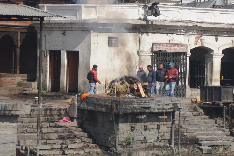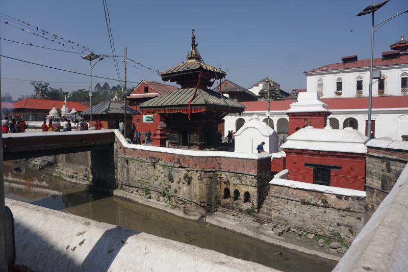 Tapınağı ortadan ikiye bölerek içinden geçen Kutsal Bagmati Nehri bir krematoryum (ölülerin yakıldığı yer)… Nepal ve Hindistan'ın her köşesinden gelen Hindular ölmek için buraya geliyorlar.