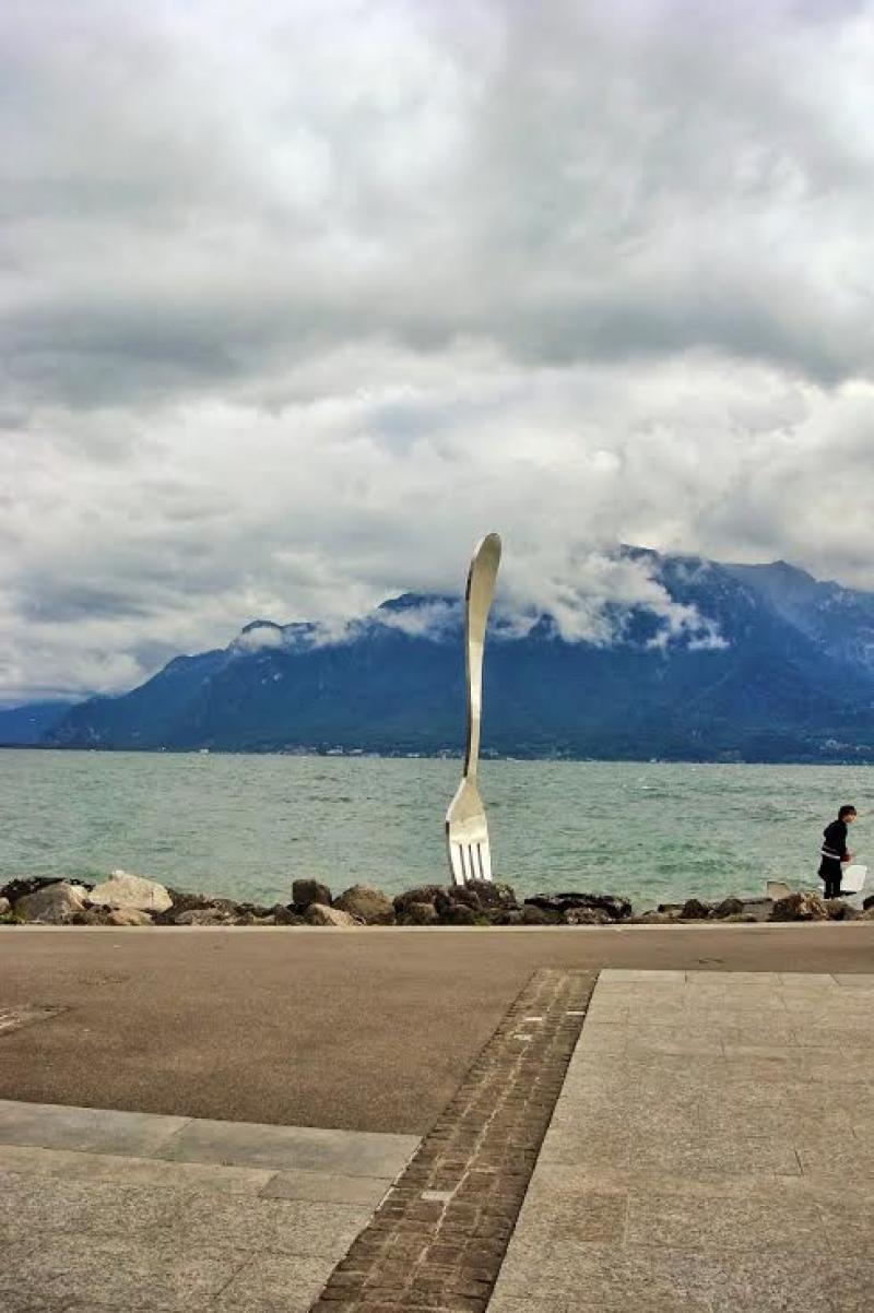 Müzenin sahil kesiminde çatal şeklinde ilginç bir heykel var. Hemen bu heykelin karşısında, kara tarafında ise Charlie Chaplin Heykeli var ve tabii biz de kasabanın ritüeline uyarak bu heykelle poz vermeyi ihmal etmedik : )