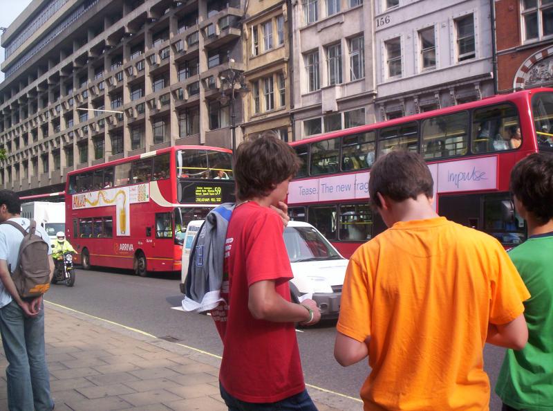 Yolda yürürken resimde görülen meşhur çift katlı kırmızı otobüslerden birkaç defa gördüğümüzü söylemeliyim.