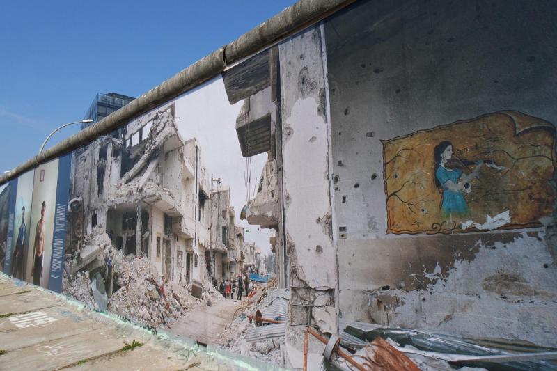Berlin Duvarı’nda bizim gittiğimiz dönemde yaklaşık 2 ay sürecek ve Eylül sonuna kadar devam edecek “Duvarda Savaş” isimli bir sergi vardı. Suriye’deki savaştan fotoğraf karelerinin ve Suriyeli insanların gerçek hayat hikayelerinin paylaşıldığı sergi ile duvarı gezmek; insanın boğazının düğümlenmesi, duvarın yıkılmasından yıllar geçse de hala büyük savaşların devam ettiğinin acı bir şekilde gözler önüne serilmesiydi ne yazık ki benim için.