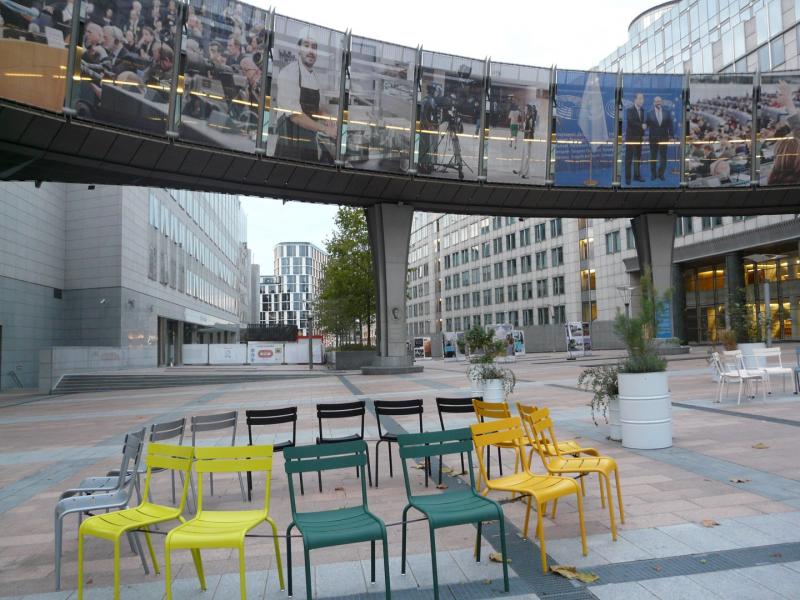 Tam arkamıza Zafer Takı'nı alarak yolumuza devam ettiğimizde ise karşımıza Avrupa Birliği Komisyon Binası başta olmak üzere birçok resmi bina çıkıyor. Bu bölgenin adı Avrupa Bölgesi (European Quarter) olarak geçiyor, Avrupa Parlamentosu da bu alanda yer alıyor ve parlamento rehberli turlar ile gezilebiliyor. Biz içeriyi gezmedik ama dışardan gözlemim ise soğuk gri binaların etkisini yumuşatabilmek için renkli detaylar ya da heykeller kullanılmış olması. Avrupa Bölgesi sokaklarında her adımınızda Avrupa Birliği'ni öven görseller ve yazılar görmeniz ise tabi ki de çok normal.