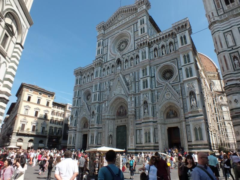 Şehrin merkezine geldiğinizde sizi çok görkemli bir yapı karşılıyor. Duomo-Santa Maria del Fiore, Floransa’nın en önemli sembolü. Avrupa’nın dördüncü en büyük kilisesi ve günümüzde de şehrin en yüksek binası ünvanını koruyor. Bu yapı 1359 yılında tamamlanabilmiş. Ana girişin hemen karşısında Vaftizhane bulunuyor. Burası da Dante gibi ünlü Floransalı’ların vaftiz edildikleri yermiş. En önemli özelliği de Doğu Kapısı’nın 1401 yılında şehrin vebadan kurtuluşunu kutlamak için ısmarlanması. Yapılan bir yarışma ile Ghiberti’nin tasarımları birinci seçiliyor. Böylece Cennet Kapısı adı verilen Doğu kapılarını yakma ile görevlendirilmiş. Kutsal kitaptan konuları anlatan bu kapının orijinali Museo del’opera del Duomo’da yer alıyormuş.