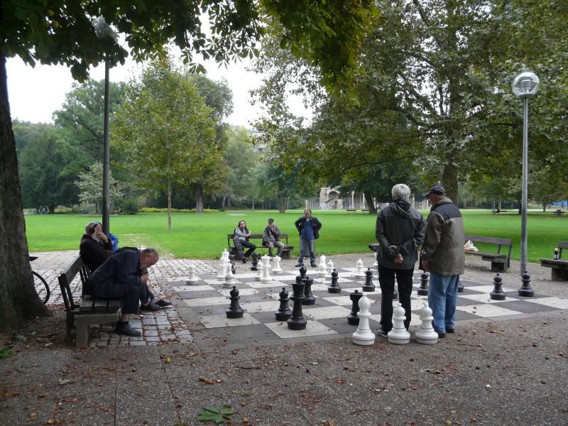Artık tam anlamıyla başladığımız noktaya tren istasyonuna geri döndük. Bundan sonra biz sonbaharın keyfini çıkarmak için yönümüzü “Unterer Schloss Garten”a kısaca adı ile “Das Grüne U” yani “Yeşil U” parkına çeviriyoruz. Park şekli itibariyle bu ismi almış ve gerçekten çok geniş bir alana yayılıyor. Eğer parkın en uç noktasına kadar giderseniz, sizi bekleyenler ise Rosensteinpark içerisindeki Wilhelma Hayvanat Bahçesi ve Botanik Bahçeleri; Neckar Nehri üzerinde cruise gemileri ile gezinti ya da Batı Avrupa’nın en büyük mineral su kaynağı olan Stuttgart Mineral Havuzları. Biz parkın daha şehir merkezine yakın kesimlerinde kalmayı ve lokallerin satranç müsabakalarını izlemeyi tercih ettik.