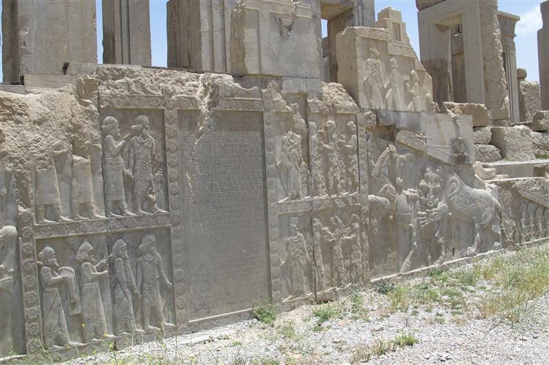 Yine bu merdivenlerden ana meydana çıkınca 1. Darius'un taşlara işlenmiş birçok rölyefi sizi karşılar.