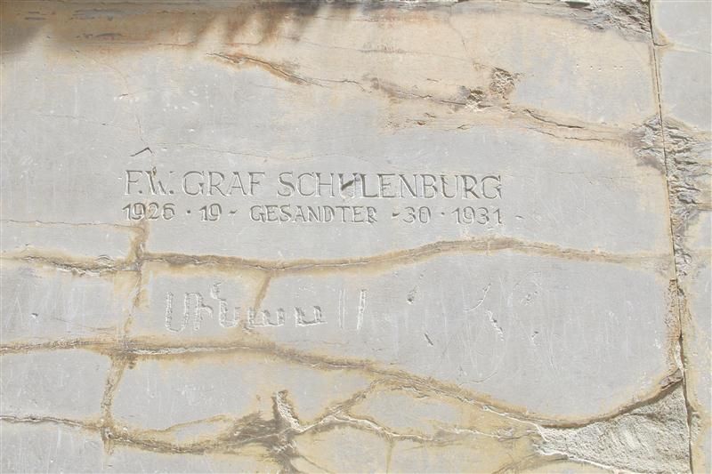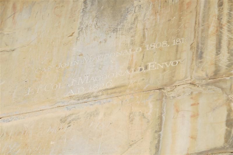 Kapıdan geçerken, zamanında burada kazı yapmış arkeologların duvarlara kendi imzalarını kazıdığını görürsünüz.