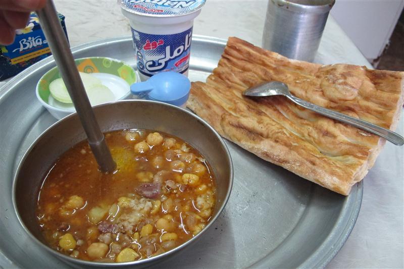 Artık gün kararmaya başlayınca tekrar inişe geçtik ve bir taksi tutup Tebriz şehir merkezine geldik. Bu arada hepimizin karnı acıkmıştı ve yine bir esnaf lokantasına gittik. Bu sefer ki menü yine İran'a has ve meşhur yemekleri Ab Guşt.