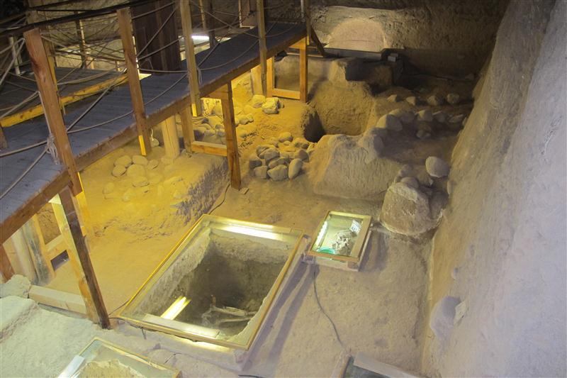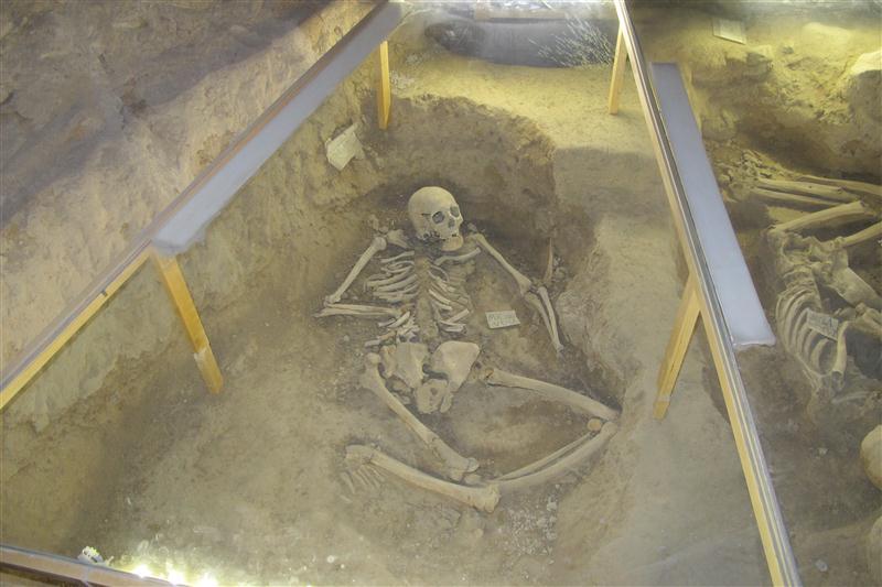 İçeriye girdiğimde şaşkınlıktan dilimi yuttum nerdeyse. Binlerce yıl öncesinden kalan iskeletler bulunmuş, yanlarında yine gömülü halde silahlar ve çanak, çömlek..Camekan bir alanda korumaya almışlar. Tarih ve medeniyeti saptamaya çalışıyorlar.