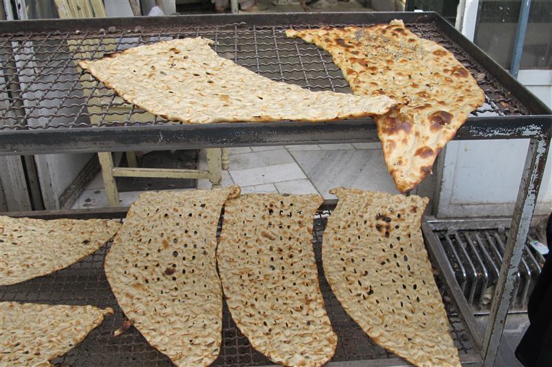 Bu arada İran'da ayranlar 2 çeşit; sodalı ve naneli. Benim favorim naneli olan. Bunun dışında bir ayran seçeneğiniz yok. Yine İran'da bizdeki gibi somun ekmek falan yok. Resimde gördüğünüz pide tarzı yada lavaş var ama büyük boyda yine.