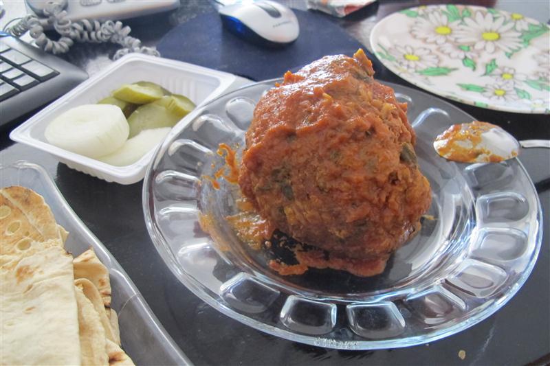 Sıcak kendini iyice hissettirmeye başladı, ve karnım acıkmaya başladı hafiften. Tebriz'e gelip buranın meşhur yemeği olan Tebriz köftesini yememek olmaz. Oldukça büyük olan bu köfteler adet hesabıyla satılıyor. Tebriz köftesine yada İran diliyle köfte tebrizi deniliyor. Gerçekten büyük ve içinde çok çeşitli baharatlar var. Tadı muhteşem güzel, nefis.