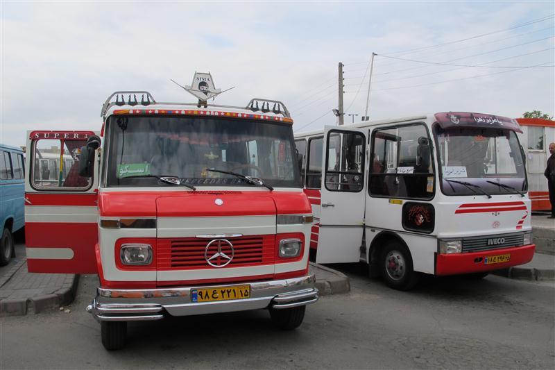 Araba çok eski, Paykan model ki, İran'da daha sonra her yerde göreceğim araba buydu. İran'ın savaştan önce ürettiği paykan üretimi durmuş sonrasında ve hala o yıllarda üretilen araçlar trafikte, araçlarda 4 kişi var yine ve kişi başı para alınıyor.