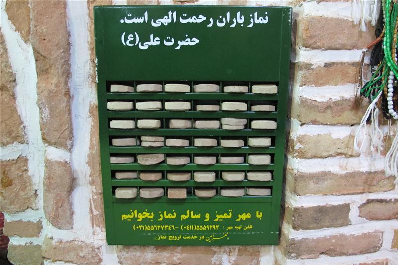 Şii inanışına göre namaz kılan her şii alınlarını mutlaka taş yada toprağa koymak zorunda. Camilerde halı üstünde namaz kılındığı için alınlarını bu taşa koyuyorlar. Bu taşlar ufak, kibrit kutusu büyüklüğünde. Taşların üzerinde Ali, Muhammed gibi isimler kazılı. Çok fazla aynı taşa alnını değdirip çok namaz kılan kişilerde bu kazılı isimler alnına çıkıyormuş dediklerine göre.