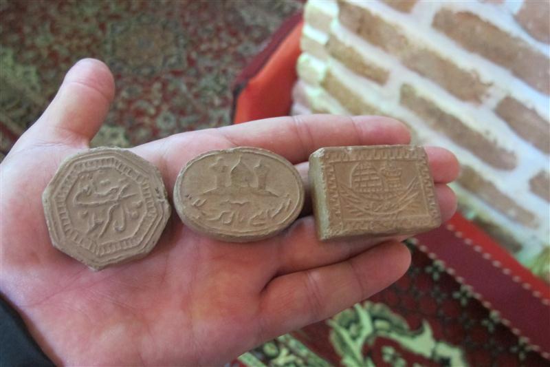 Türbe girişinde daha sonra tüm İran'da her camide ve otelde göreceğiniz Mühr-ü Namaz Taşları var.