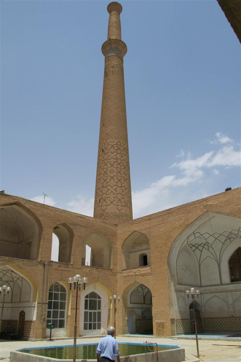 12. yy'da yapılmış olan bu cami hakkında net bir bilgi yok. Minaresinin yüksekliği 48 metre. İçerde tadilat var. 2 yıldan beri bu tadilat sürüyormuş. Farklı tuğlaların kaynaştırılması ile yapılan bu minare tüm İsfahan'dan gözüküyor. Minare üzerinde firuze tekniği ile yazılmış Kelime-i Tevhid yer almakta ve ikinci kısmında mozaik tuğla tekniğiyle yazılmış bir kitabe bulunmakta. Bunları bana cami imamı anlattı. Ne yazık ki detaylı bir katalog ya da broşür bulunmamakta.