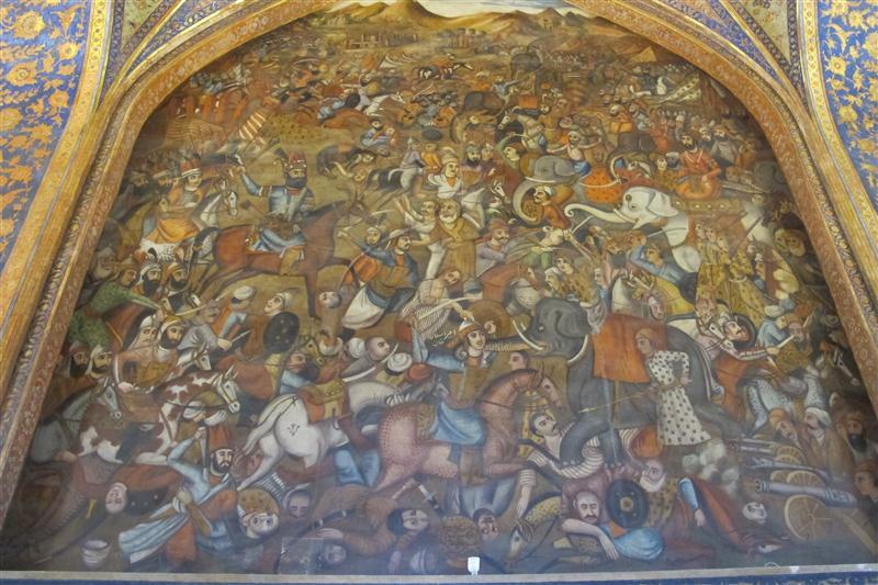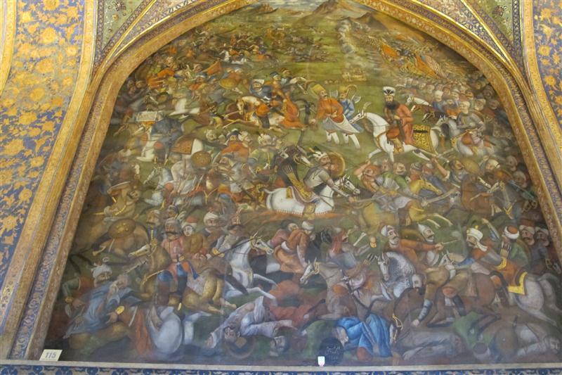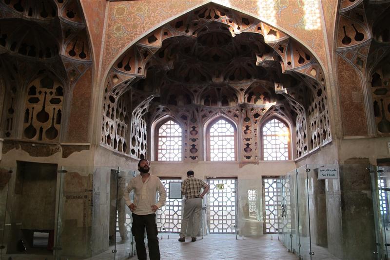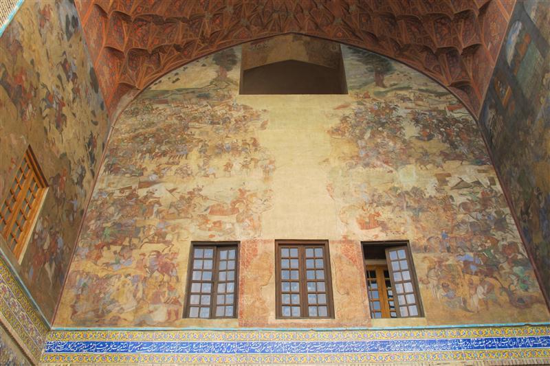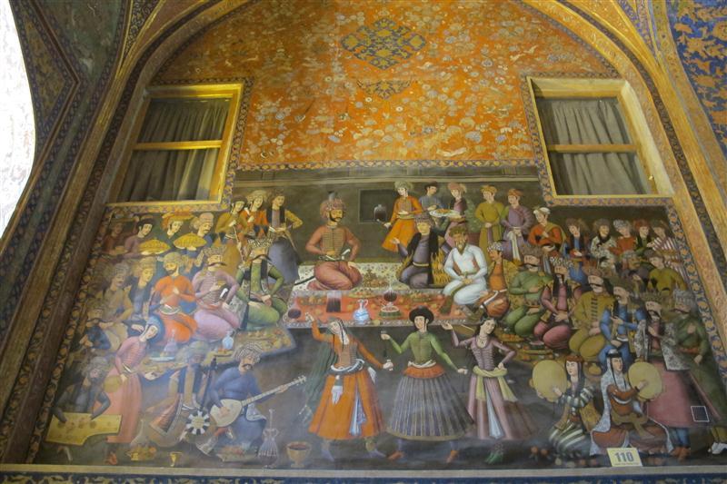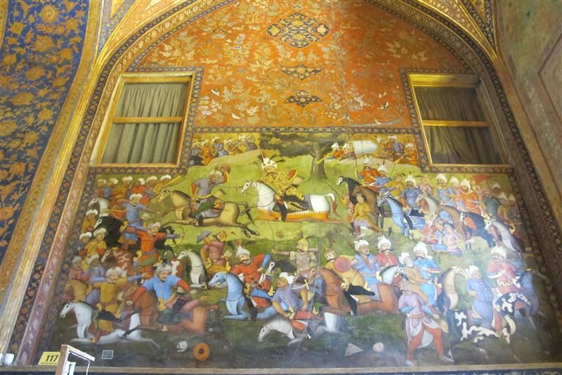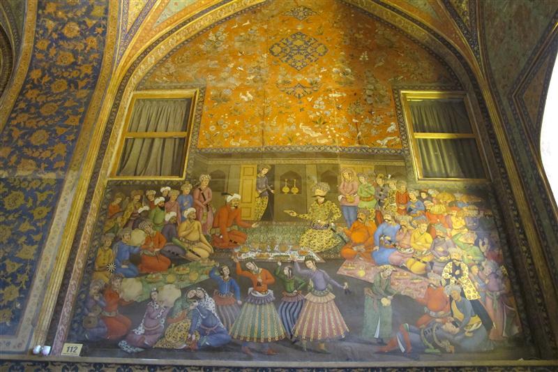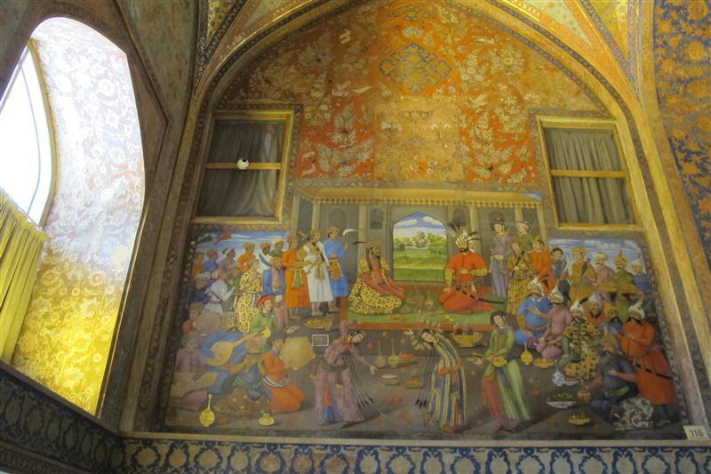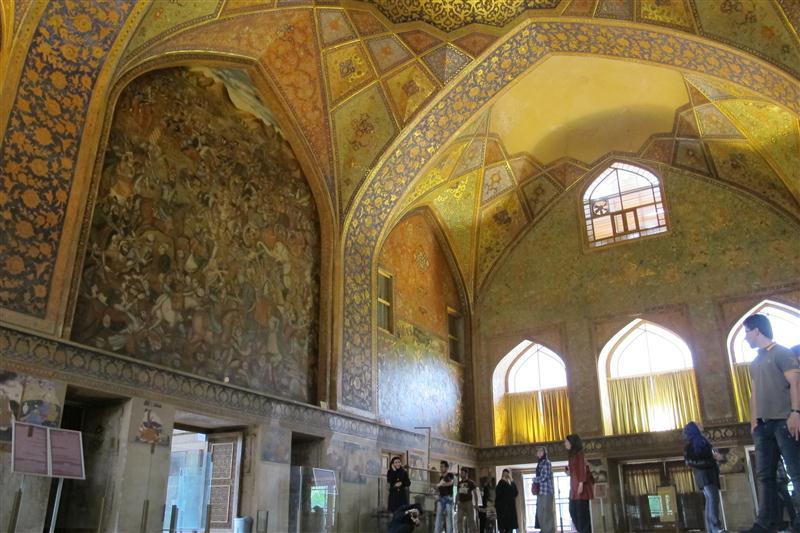 Duvarda bulunan bu resimler gerçekten etkileyici. Genel olarak İsfahan halkı da bu tip yerlere çok sık ziyarette bulunmakta. Bu saray öyle bir saray ki tüm duvarları, tavanı, sütunları, odaları baştan başa resim ile dolu ve her yerde yapılmış duvar resimleri bize başka bir hikayeden söz ediyor. Yine sarayın içinde 14. ve 15. yüzyıldan kalma eserler, el yazmaları ve kapı örnekleri sergileniyor.